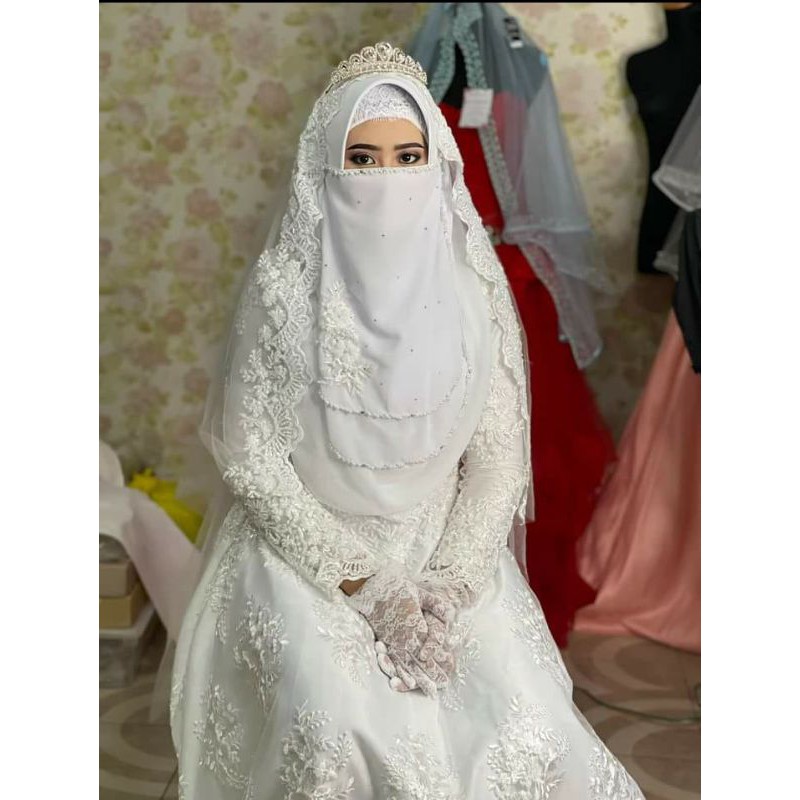 "#hijab #burqa #hijaab #arab #modesty #abaya #niqab #jilbab #purda #nikah #muslimah #wife #niqabi #نقاب# #hijabi #beautiful #love . Beli set gaun pengantin syari free cadar tali weeding dress terbaru di shopee.